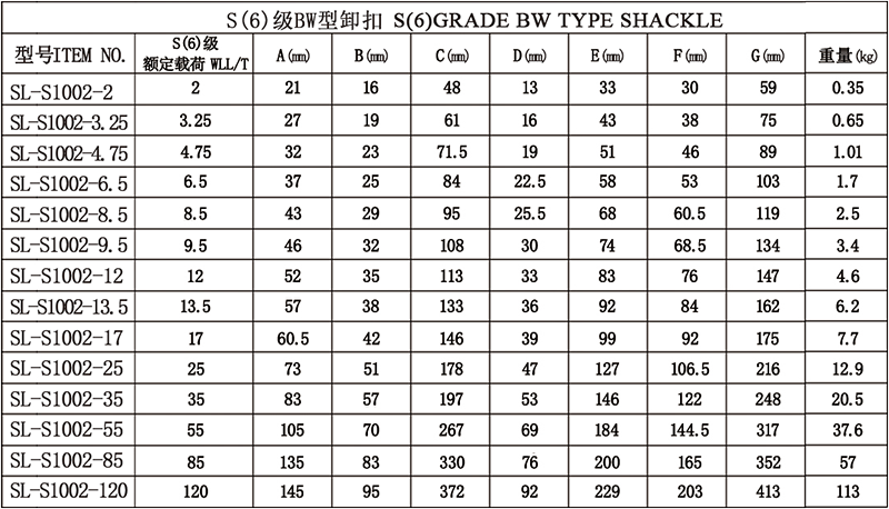 S(6)级BW型卸扣